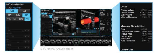 S-3D Arterial Analysis simplifies volume measurement of arterial plaque, providing 3D vessel modeling.