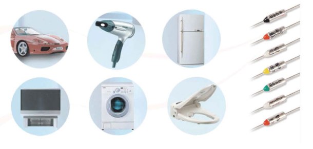 Two major applications are automobiles and home appliances including heating devices, coilwinding products, power supplies, office equipment, telecommunication devices and other electronic components, ranging from toasters to ovens and gas ranges and electric humidifiers. DYE thermal fuses are exported to over 50 countries with all the certification approvals such as UL, VDE, PSE, CCC and KE.
