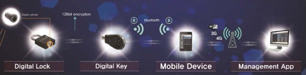 Hyper Lock & Key is a product that electronically complements the disadvantages of the mechanical locks such as illegal opening & closing/unavailability of storage of use records/replacement cost in case of loss and its problems/difficulties in management. It is possible to open N units of locks with just one key, and N pieces of keys are usable to one lock. Use recordsare stored in both the key and lock, and real-time control is available using the network.
