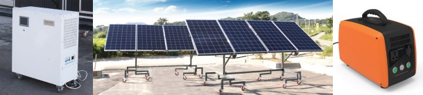 PV with mounting device features easy installation, adjustable angle and solar power module built-in structure. When moving it, one can load it on small truck (1 ton) or RV. It is thus ideal for camping.