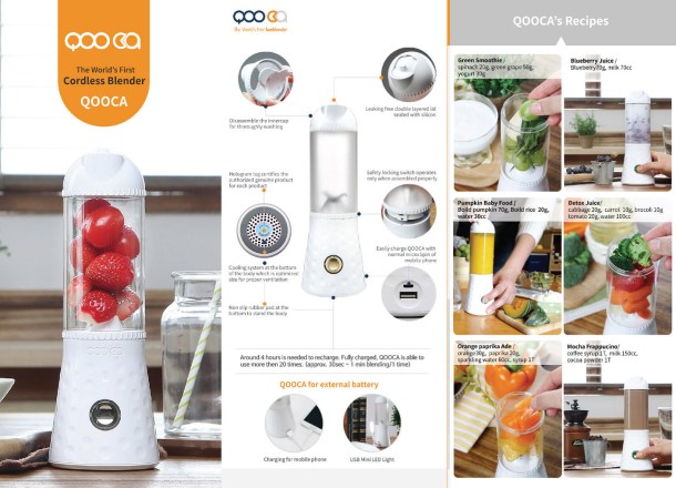 QOOCA is the world’s first tumbler-styled blender that enables you to make juice anytime, anywhere and for anybody, to be your healthy little supplement in life. The micro-small motor, a product of the best Japanese company that enables QOOCA, is a powerful motor that emits very little noise and grinds fruits, vegetables and even nuts. The self-produced 3D angle blade also mixes in diverse angles and forms a spiral pillar to better grind the contents.