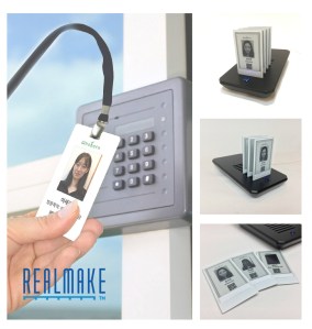 This security system visually checks whether the picture and the documentary information printed on the card match with each other without using an additional device. With the E-Paper technology, the card’s content can be conveniently modified for reuse, and a QR code or barcode can be displayed if needed. This system displays input information without the need for power. Security is enhanced by the use of an NFC tag that contains a unique identifier. The access can be effectively managed by checking and uploading information through a PC or a mobile application. This system can be used for visitor passes for companies, vehicle access and parking management, controlled access to apartments (e.g., milk, newspaper, and parcel delivery, and so forth).