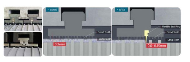 This product is a buffer & restoration structure against rotor vibration by winding spring assembled with flexible seal, and minimizes tooth damage. This product reduces steam leakage by 36% compared to existing products to improve efficiency in turbines and reduce fuel costs.