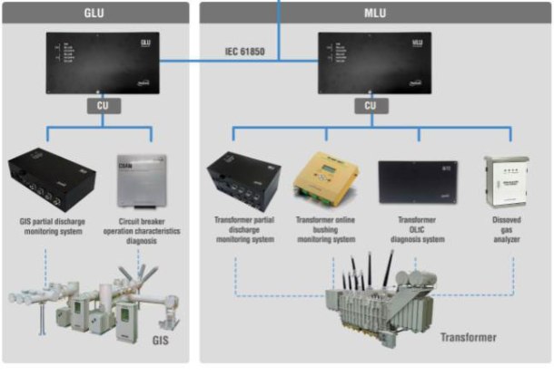 GLU Products have two different configurations, which are UHF partial discharge and CB operation characteristics. Partial discharge features an installed fUHF sensor (500MHz~1500MHz) enabling the user to make decisions on over five types of partial discharge. Data analysis of PRPS and PRPD with library update and measurement data learning function is also possible. CB operations have a trip / close function with coil current from 0 to 5A and open/close contact function. UHF partial discharge system of MLU (transformer) uses a window sensor and a drain valve sensor (300MHz~1,800MHz). It can make decisions on over six types of partial discharge and contains all the functions that GLU has. Furthermore, MLU has a dissolved gas analysis system, OLTC monitoring function and bushing diagnosis function with less than 0.2% of error rate.