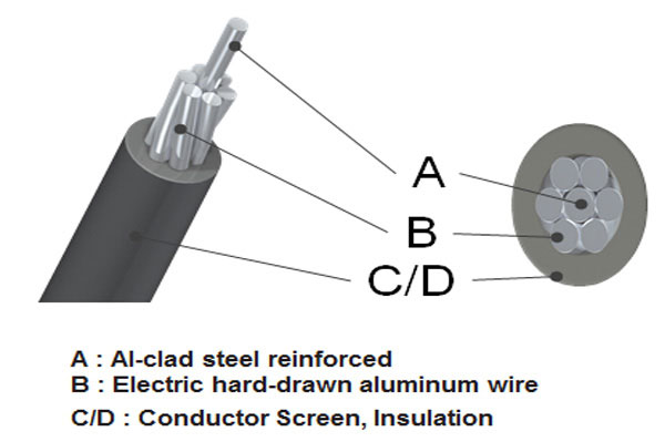 This overhead power line cable is manufactured to be used for overhead distribution lines on poles and steel towers. Among this kinds of cables are: ACSR/AW-OC, AL/XLPE/XLPE(SAC, Spaced Aerial Cable). They consume voltage of from 12kV to 36kV.