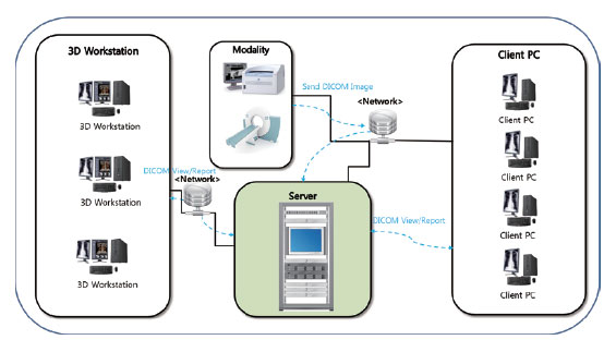 Without additional modules, PACSPLUS can manage a server’s configuration (selectable from main server, backup server, cluster server, and VMWare), and archive DICOM files by back-up scheduler, and easily report work-list DICOM files by radiologists.