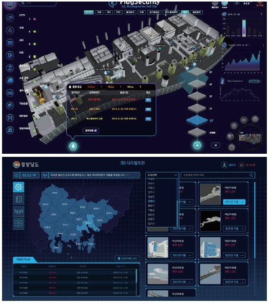 Also, it is possible to identify information, status and problems of facilities by linking with on-site sensors and monitoring. It is automated to collect real-time data of each system through API of the middleware and visualize them on a 3D map. Other exceptional systems can be linked with our system through an additional programming process. These features make it possible to add additional functions to the platform to match the characteristics of the venue-data centers, subway stations, factories, and power plants.