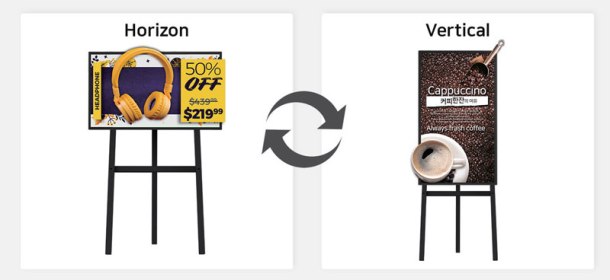 It provides a three-dimensional feeling without dead areas thanks to the 160-degree angle of view and 1m-5m wide viewable range and the converting function of landscape/portrait mode according to its use and space, and it can be used even in a high illuminance shop without restriction.