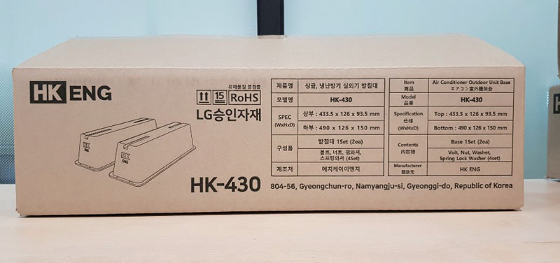 [INQ. NO. 2012E21] The HK-430, 520 and 730 air conditioner outdoor unit base support series by Digital Kukje Airconditioner developed as a countermeasure to support the existing support the ABS material that breaks and crumbles when exposed to UV rays during winter.