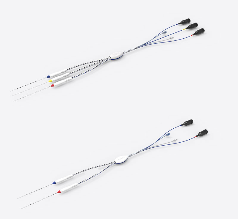 The electrodes also have length markings in centimeters on the surface of the needle for easier and more accurate targeting of the tumor. The end of the electrode tip is specially processed to look more hyperechogenic under ultrasound.