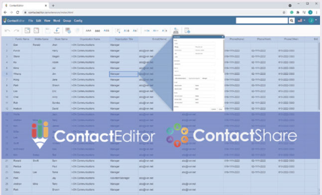 Contact Editor & Share is I-ON’s contact management solution. Many contacts, which were difficult to manage on a mobile phone, can be edited and managed quickly and easily in the form of spreadsheets.