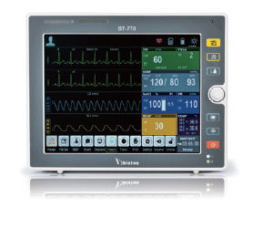 Patient Monitor obtains the physiological signals such as ECG, respiratory rate, NIBP, SpO2, temperature, and other optional parameters. There are various sizes of display (15, 12, 8, 4 inches) with color TFT touch screen. It can check multiple monitors through the central monitoring system. It provides multiple placement modes with its smart hook & stand design. It works over 5 hours on battery.