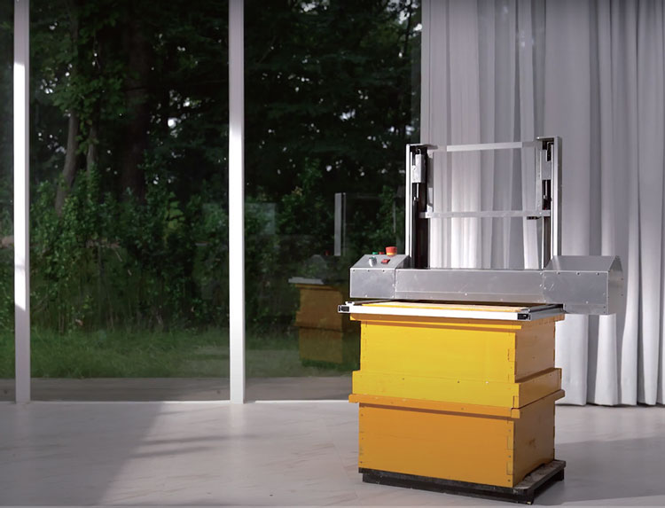 This is achieved by automatizing the extraction of byproducts from beekeeping without human workers being directly involved in apiary activities.