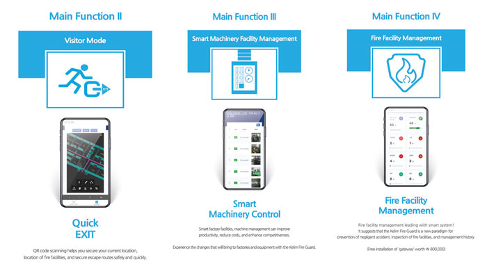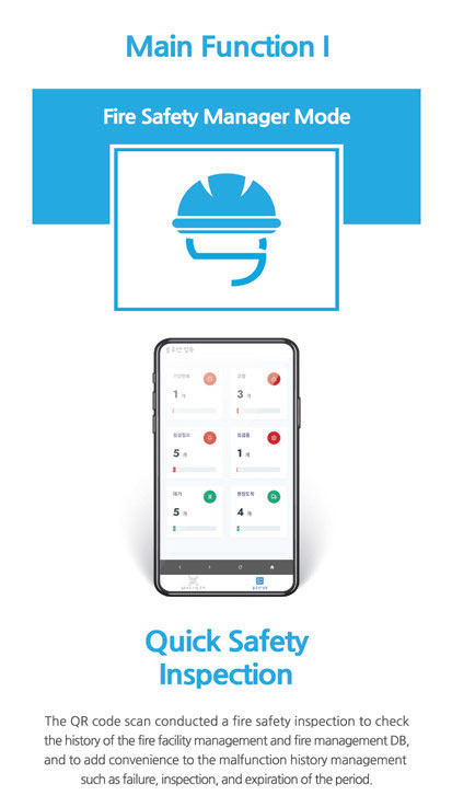With Fire Guard, a building manager can easily manage the building and its firefighting facilities by attaching QR codes onto the firefighting facilities to inquire about the facility and the product information.