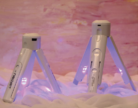 All that the user has to do is to place an object within the tripod and press the power button on top for sterilization. In addition, it can be used as a cradle and a camera tripod by attaching the head cap.