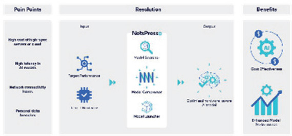 NetsPresso is Nota AI’s proprietary hardware-aware AI optimization platform that automates the development process of lightweight AI models. The platform automates repetitive development steps, significantly reducing the time and resources required to develop an AI model and optimizes it for the target device to enable more efficient and effective deployment in production. This helps resolve AI-related constraints in business use cases by removing the requirement for high-spec servers and network connectivity while preventing high latency and personal data breaches. The resulting benefits are cost-efficiency and enhanced performance.