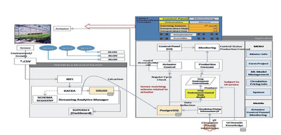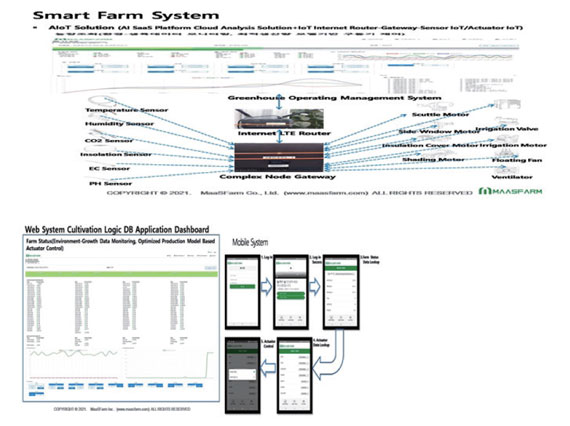 In addition, the platform is connected with LTE Internet router-gateway-sensor nodes- actuator nodes — all of which can be installed within a greenhouse, to operate a converged smart farm system.