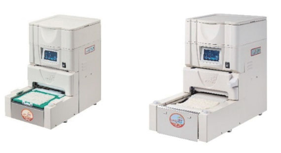 The LSR-370+SAS is a machine that automatically arranges the shari that are shaped by the sushi machine into the tray, and arrange it on the lunch box or plate that the customer is using.