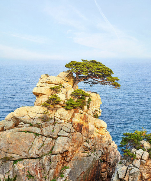 One pine tree in particular is very famous among Koreans. Looking out to the East Sea from Hajodae Pavilion, you can see a 200-year-old pine tree growing from the top of the rocky cliff. The tree is used as the background image for national broadcasts during the first verse of the national anthem; many people even call the tree “National Anthem Pine Tree”.