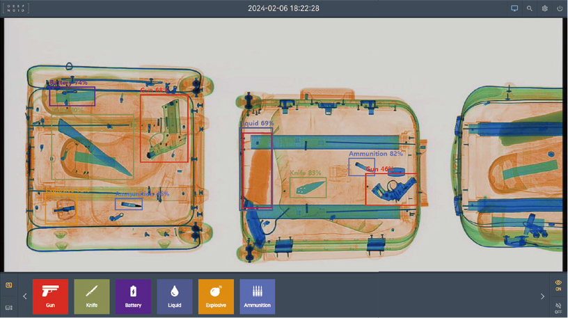 SkyMARU DEEP:SECURITY was developed jointly with the Korea Airports Corporation and assists security personnel in visual reading by quickly and accurately detecting prohibited items on board. It detects more than 20 types of items prohibited from being carried on board as notified by the Ministry of Land, Infrastructure and Transport (MOLIT). DEEPNOID has actual references for the detected items – in collaboration with the Korea Airports Corporation.