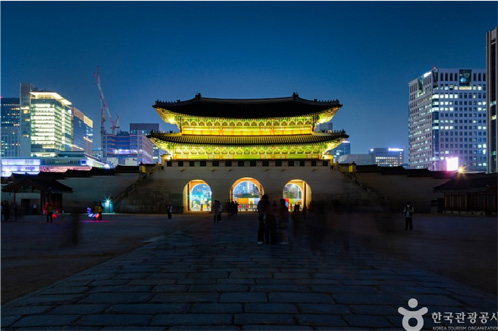 Gwanghwamun Gate, a meeting place for visitors traveling around and a starting or ending point for tourists, boasts a splendid figure and stands in the center of Seoul.