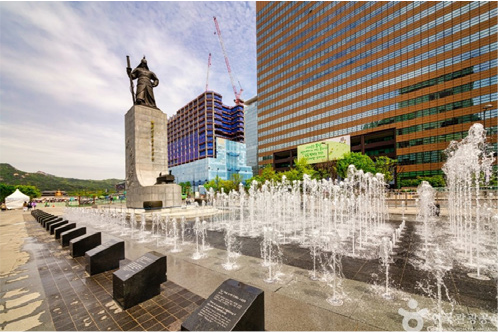 Passing through the wide lawn (Yukjo Madang) that symbolizes Yukjo Street of major government offices in the Joseon dynasty, you can see the statue of King Sejong the Great, the symbol of Gwanghwamun Plaza. It is full of attractions, such as Norimadang, where various events are held, and the waterway of time that connects the past and the present. Also, it has various resting areas with forests and shade: the pine tree garden, Time Garden, the four season garden, the cultural shelter, Gwanghwamun Citizens Square, and Gwangjangsup.