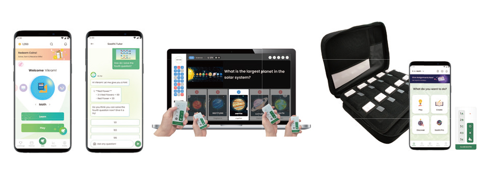 Class Saathi is an AI (artificial intelligence) and IoT-based online-offline integrated learning support solution that analyzes the level and weakness of each student and supports self-directed learning. As the world’s first patented education and evaluation solution using smartphone-linked remote control (IoT Clicker), it does not require additional infrastructure (computer, wi-fi network, etc.) to use the product (service).