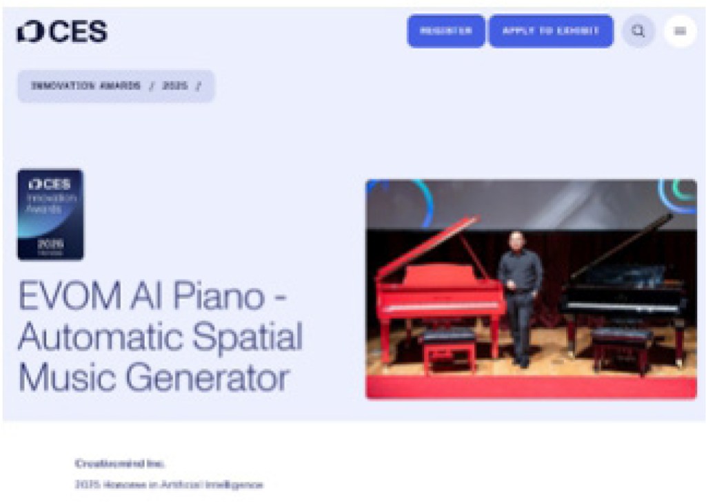 The AI piano (INFINIA) developed by domestic AI music technology company, CreativeMind Inc., won the AI Innovation Award at CES 2025.
