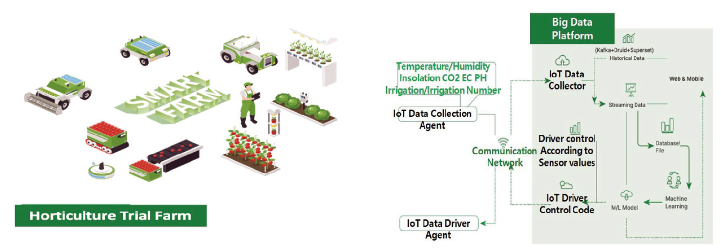 By using AIoT convergence technology and AI environment control and yield prediction models, MaasFarm can forecast production quality, identify types of pests, operate and manage greenhouses, and control automatic machinery in real time through its driver control, and thus optimize crop production.