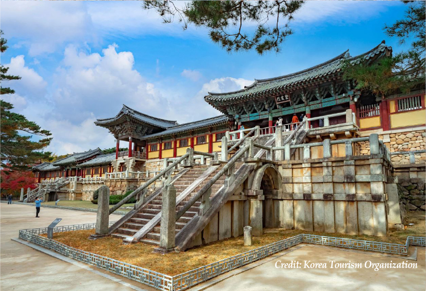 Hwangnyongsa Cherry Blossom Road, the path in front of General Kim Yu-sin’s tomb, is famous for its “popcorn-like” fluffy cherry blossoms. At Daereungwon Royal Tombs, ancient burial mounds create a striking contrast with the cherry and canola flowers that bloom around them. UNESCO World Heritage sites Bulguksa Temple and Seokguram Grotto take on an enhanced spiritual atmosphere in spring, while Bomun Lake offers leisure activities alongside cherry blossom viewing.