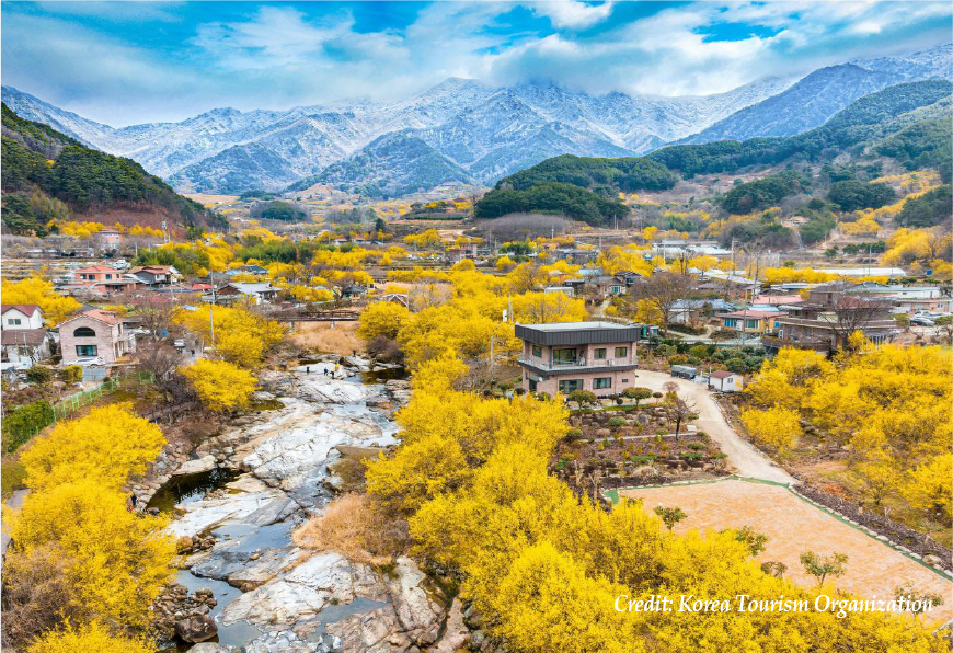 For spiritual tranquility, Songgwangsa Temple surrounded by mountains offers a peaceful spring retreat, while Naganeupseong Folk Village allows visitors to imagine life in Korea’s pastoral past while surrounded by fresh spring greenery.