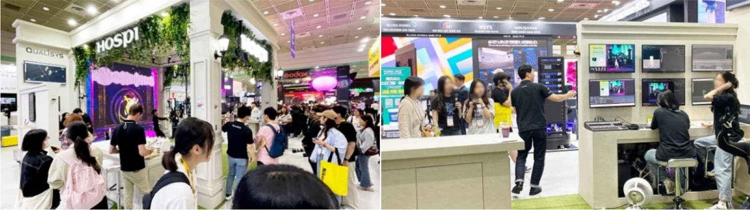 At this exhibition, HOSPI, in collaboration with content production company Sangsangplace, demonstrated the entire process of virtual content production on-site in real time, drawing great attention from visitors.
