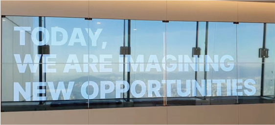 Unlike conventional displays that appear black when turned off, T-OLED remains up to 45% transparent — resembling glass — thus creating a sense of openness within the space. Display and Life has global experience with numerous Transparent OLED projects, particularly in the United States, Japan, and Europe.