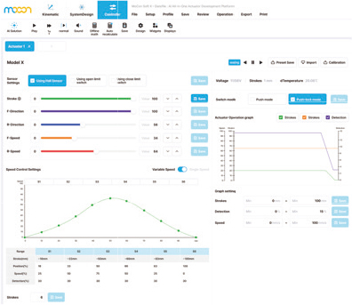 MoCon’s AI all-in-one actuator system ToolKit is an integrated platform that streamlines the entire actuator system development process. Through kinematic simulation, it predicts and verifies motion behavior, while its no-code programmable controller allows even complex systems to be configured easily without coding.