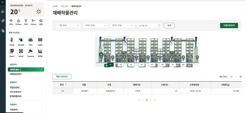 BrightFarm can manage and check the data (temperature, humidity, illumination, CO2, nutrient solution, ventilation/air conditioning, growth status, CCTV) of farms linked based on the same 3D model as the actual farm.
