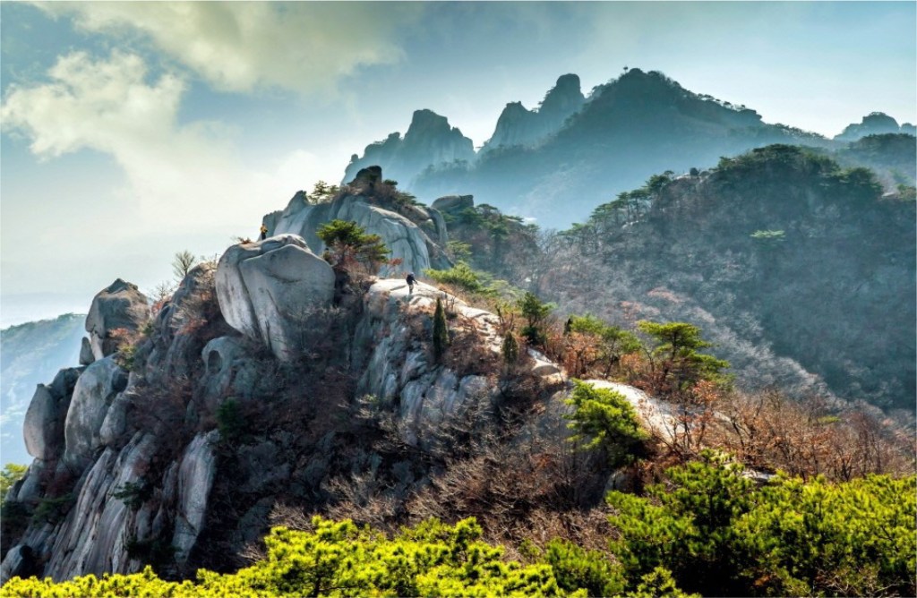 Kkalddakgogae Pass in particular was named for the sharp sound of breathing you’ll produce after climbing up the steep staircase here. But if you can make it past that section, the summit will be just before you. During the summer months when it rains often, the sound of water babbling in the valley brook will keep you company.
