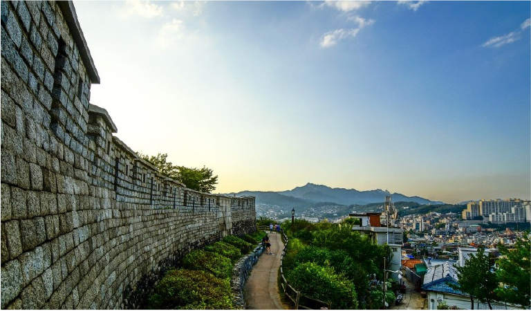 1396 to protect Hanseong, the then-capital city of Joseon. Currently, the old city wall in located in the middle of Seoul, and is divided into six sections. Among these, the Naksan Section is the easiest course, and offers stunning nightscape views, making it a popular choice. You can receive a commemorative badge if you walk all six sections of Hanyangdoseong and collect stamps at the designated spots.