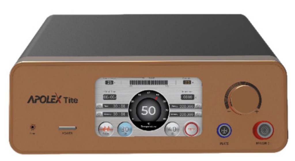 The APOLEX Tite, a key product to be showcased at the exhibition, is a medical device utilizing the Inside Monopolar Radiofrequency (IMR) method. Its design utilizes a patented, ultra-small temperature-sensing cannula to deliver high-frequency current to tissue to induce coagulation.