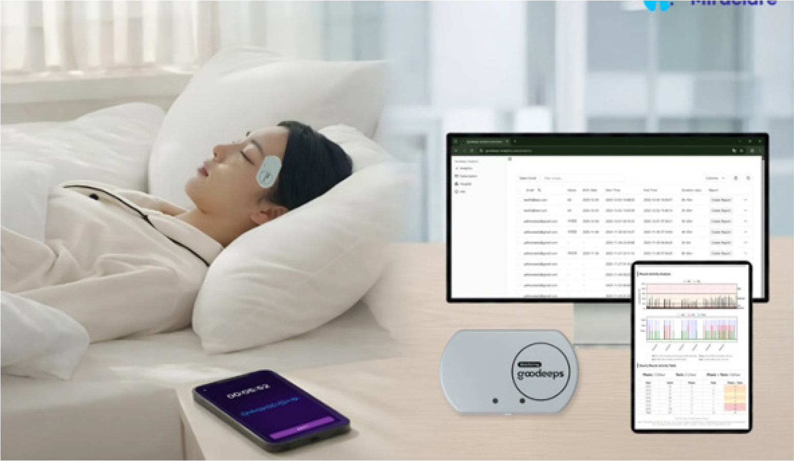 At KIMES 2026, Miraclare will showcase its teeth grinding and teeth clenching analysis solution, Goodeeps Monitoring, to medical professionals and hospital staff, demonstrating its practicality and potential clinical application. The key objective of this exhibition is to clearly demonstrate that this rental monitoring system measures temporomandibular joint muscle activity during sleep and allows patients to utilize the results from their home tests for consultations and explanations at the hospital.