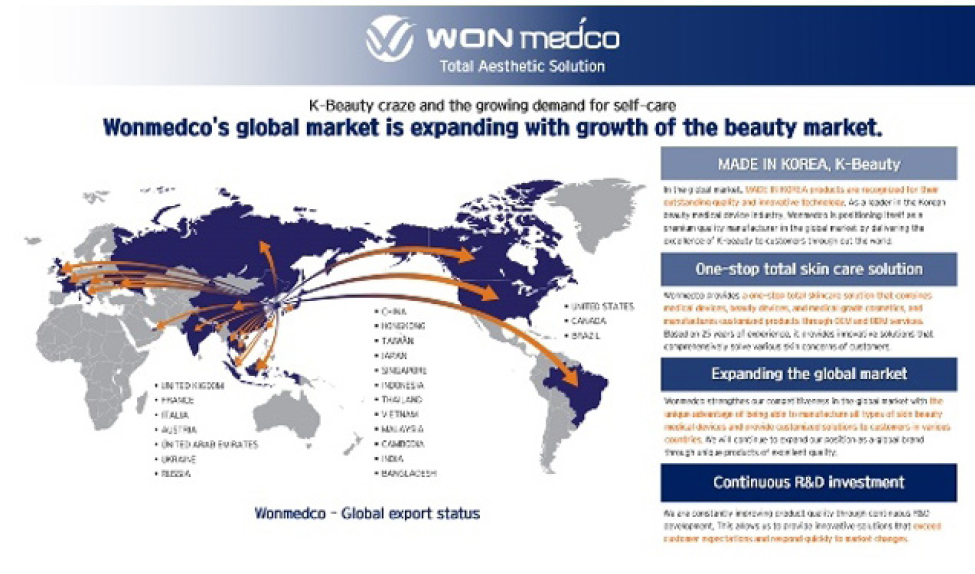 “Founded in 2005, WON MEDCO is a subsidiary of Wontech, a laser medical device manufacturer. We manufacture and sell medical devices for dermatology and aesthetics, homecare beauty devices, and medical skincare products. Developed in collaboration with leading experts, we offer high-quality products that will help you restore your skin’s natural beauty,” remarked the company’s CEO.