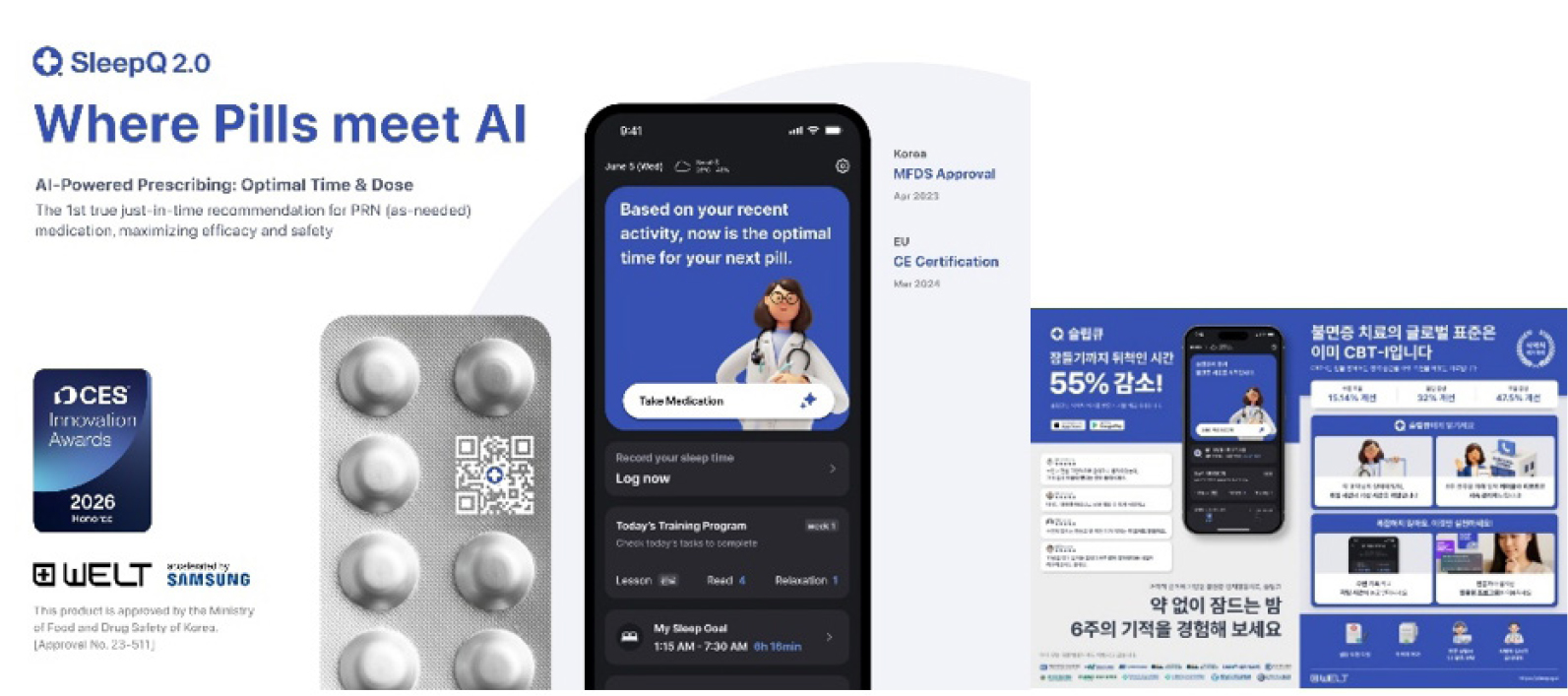 In 2023, WELT obtained approval from Korea’s Ministry of Food and Drug Safety (MFDS) for its insomnia treatment, digital therapeutic SleepQ, establishing a foundation for commercialization in Korea. The company has since collaborated with pharmaceutical firm Handok to expand prescriptions and distribution across domestic medical institutions, promoting a new treatment approach that combines digital therapeutics with conventional medication.