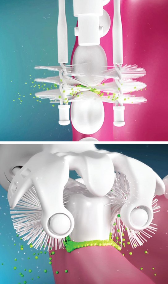 teeth by reciprocating a toothbrush and sweeping it left and right when removing plaque between teeth and gums or cleaning the space between teeth and gums.