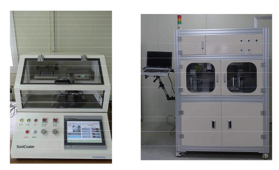 It can make an even coating surface by minimizing a spraying drop size using an ultrasonic nozzle. It can coat more accurately by using an ultrasonic nozzle with a frequency of 220kHz, which was developed for the first time in the world.