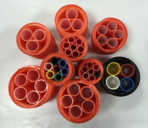 [INQ. NO. 2008E05] The COD is mostly used to protect optic cables or even low-voltage power cables. The spiral-shaped corrugation gives a higher resistance against pressure or impact (100% safe against earthquakes). Easy duct installation is possible with a working life of over 50~100 years (easy maintenance). The inner ducts (consisting in inner sub-ducts, from 2 to 9 inner sub-ducts) help to easily identify the cable types. Furthermore, having inner sub-ducts gives a higher protection when air blowing or pulling the cable through the duct (no cable-to-cable friction).
