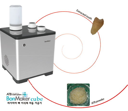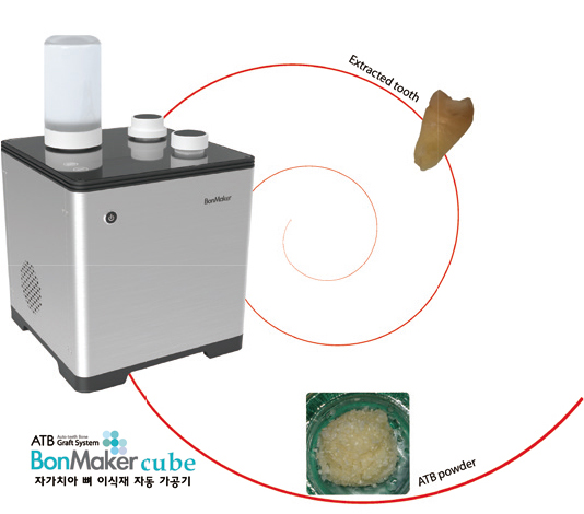 The graft material named ‘ATB (Auto-Tooth Bone)’ from BonMaker is made from the patient’s teeth and it shows perfect biocompatibility, safety, effectiveness and full remodeling into the new alveolar bone in the shortest time. It has far less bone resorption problems compared to any other commercialized bone graft material.