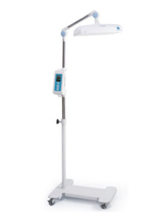 Phototherapy treats neonatal jaundice using high-intensity blue LED lights. It is noiseless with a fan-less design and can control the intensity of light for two levels. Two types of phototherapy are selectable: stand type; and blanket type. It can be used with an infant incubator and infant warmer.