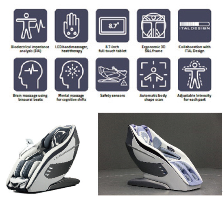 Davinci is the world’s first body-composition measuring massage chair with the aesthetic sense of Italdesign.