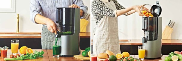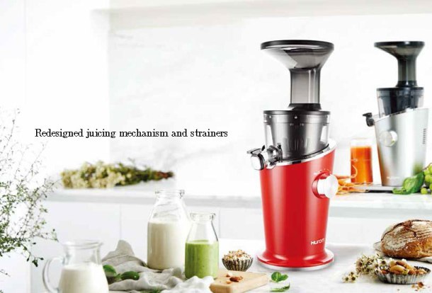 HUROM’s slow juicer ‘HUROM EASY’, as an innovative product, adopts the widest feeding entrance (136mm), and two-liter volume of mega hopper, and it thus can extract fruits and vegetables in whole form.