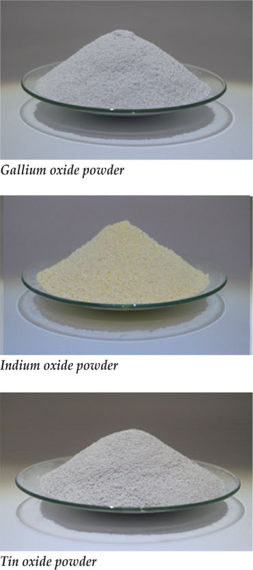 Main products manufactured by the company include tin oxide (SnO₂), indium oxide (In₂O₃), and gallium oxide (Ga₂O₃) nano powders, which are the main materials used for ITO and IGZO targets that are also used as materials for TCO coatings and oxide TFT onto displays.