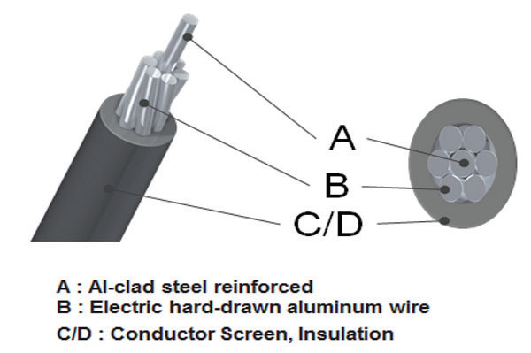 This overhead power line cable is manufactured to be used for overhead distribution lines on poles and steel towers. Among these kinds of cables are: ACSR/AW-OC, AL/XLPE/XLPE(SAC, Spaced Aerial Cable). They consume voltage of from 12kV to 36kV.